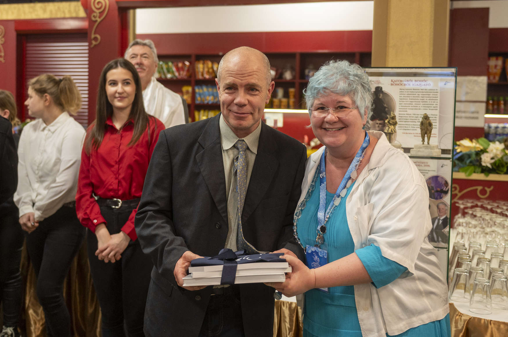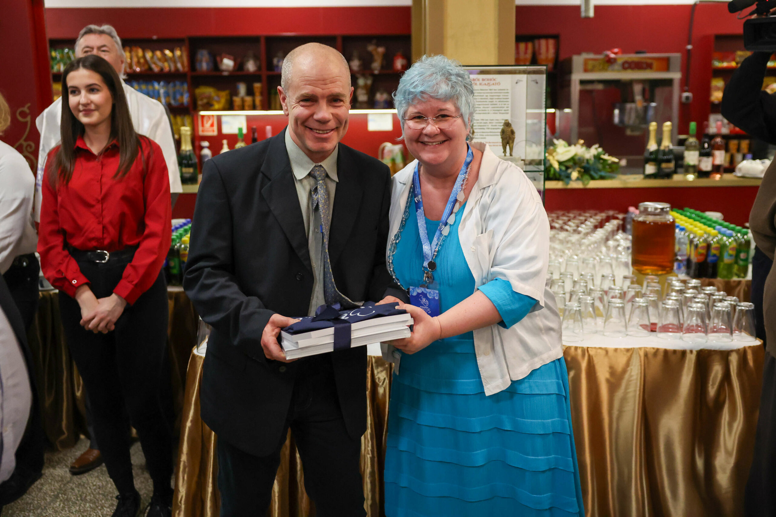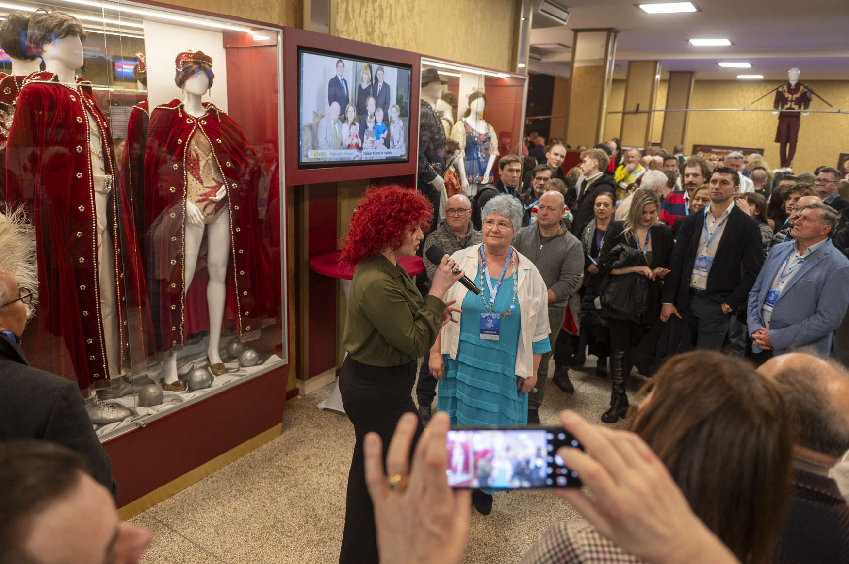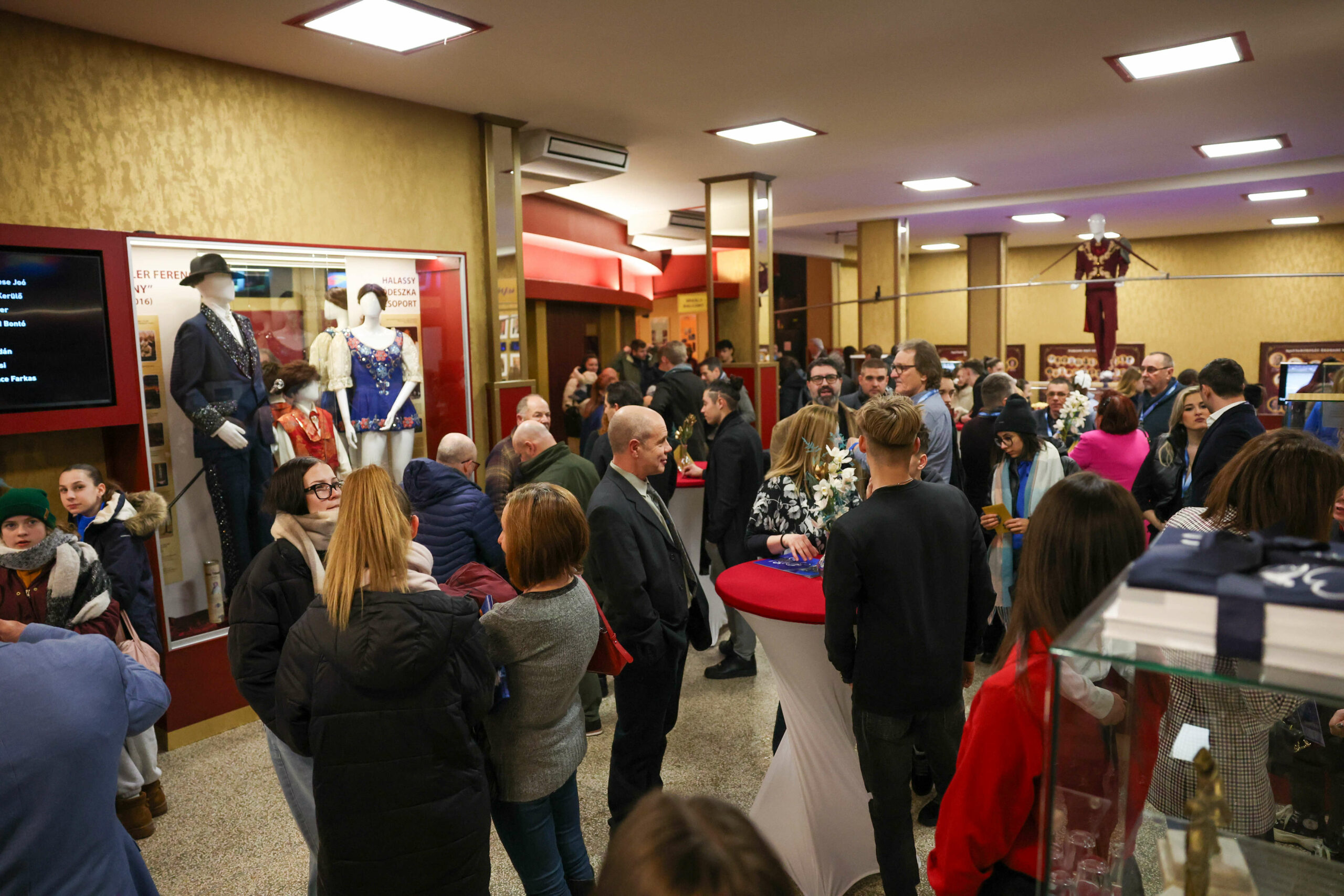 A megnyitót nagy örömünkre személyesen is megtisztelte Réti Dániel és Stift Gábor, akik forgó szerepben maguk is viselték a kiállított piros kosztümöt.