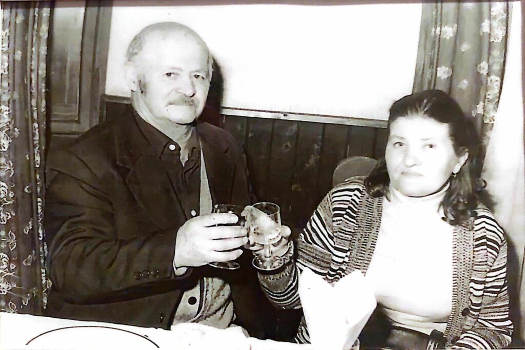 Második házassága azonban „az égben köttetett”: férje, Picard Nándor Ferenc – vagy ahogy sokan ismerték, Feri bácsi – rendkívül tisztességes, megbecsült ember volt szakmai körökben. Kapcsolatuk őszinte szereteten és tiszteleten alapult, megbonthatatlan szövetség volt közöttük. A fotón Vilma férjével koccint Baranyi László artistaművész esküvőjén 1984. decemberében.