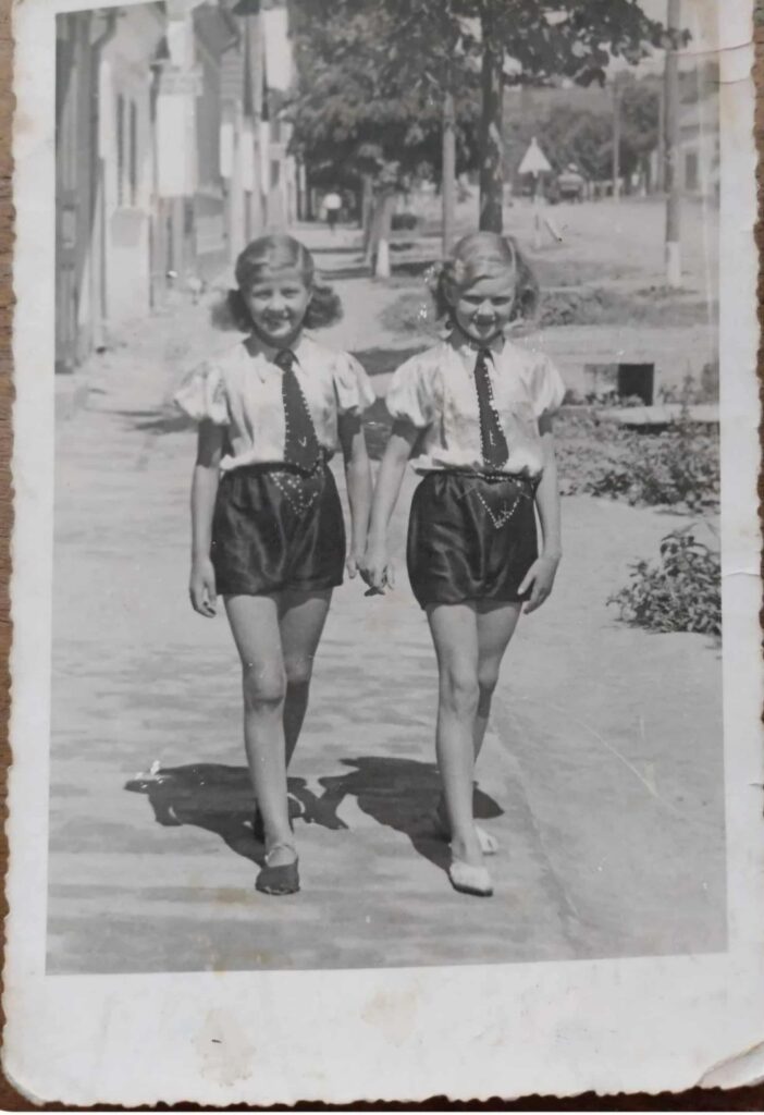Tautz Vilma 1929. január 13-án született Sashalmon, egy régi cirkuszi dinasztia tagjaként – a Tautz család fellépéseiről már az 1880–90-es évek korabeli lapjaiban is olvashatunk. Vilmának nehéz és kihívásokkal teli gyermekkora volt: már hatévesen fellépett hajlékony akrobata számmal, és kígyókkal is táncolt. Zenei érzékét jól mutatja, hogy kiválóan dobolt és harmonikázott. Az itt látható képen baloldalon Tautz Vilma látható kb. 7 évesen partnerével, Vas Évával 1936 körül. Kosztümben álltak kamera elé, nyakkendőjükbe hímezték a monogramjukat.